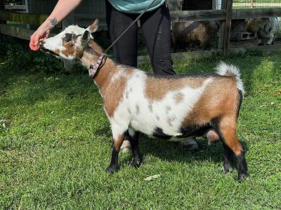 All adult goats are ADGA registered and available kids can be registered. Prices listed are farm pick-up only. Once your interest in a kid has been confirmed, we will put you on the interested list (and you will see your initials confirmed on our kidding page). At the time of kidding, interested parties (on a first come first serve basis) will be contacted with photos of available choices. If you choose to reserve a kid at that time, we will require a deposit of $100 for a doe and $50 for a wether. Deposits are non-refundable and are due within seven days of your selection. In the event that we are unable to provide the animal to you (animal sickness, farm retainment, etc.), you will receive a full refund of your deposit. A change in mind on your part does not merit a refund. At any time, we do reserve the right to retain an animal born here.